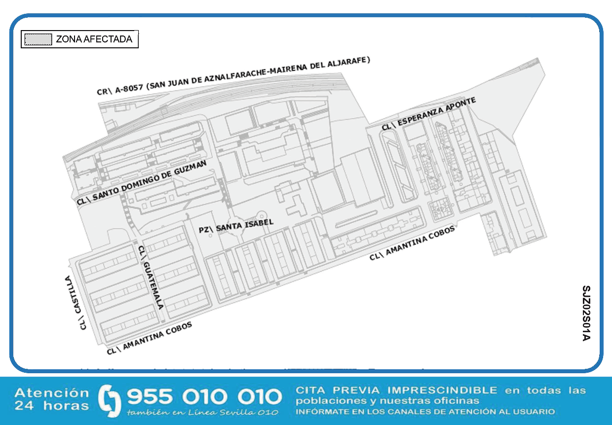 • Barriada Santa Isabel- Amantina Cobos (ver plano con la zona afectada). Desde el 22-03-21 al 09-04-21. Se producirán cortes totales del suministro los días 23 y 25 de marzo entre las 2:00 y las 6:00 horas.